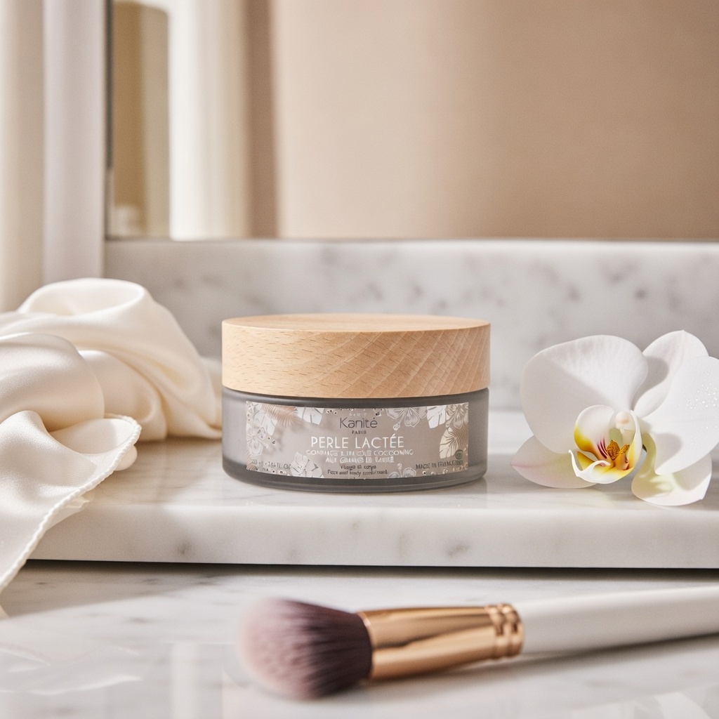 Le Gommage & Masque Perle Lactée de Kanité est un soin 2-en-1 exceptionnel qui combine les bienfaits d'un gommage exfoliant doux et d'un masque nourrissant en une seule étape. Enrichi en beurre de karité biologique pur, ce soin polyvalent élimine en douceur les cellules mortes et les impuretés qui ternissent le teint, tout en nourrissant et hydratant intensément l'épiderme. Le beurre de karité est naturellement riche en acides gras insaturés et en vitamines A, E et F qui favorisent la régénération cellulaire et restaurent le film hydrolipidique protecteur de la peau. Ses agents exfoliants naturels agissent mécaniquement pour affiner le grain de peau, désobstruer les pores et préparer la peau à mieux absorber les soins suivants. Utilisé comme gommage, il laisse la peau lisse et satinée au toucher. Utilisé comme masque, il apporte une nutrition intensive et une hydratation durable en profondeur. Après utilisation, votre peau est transformée : soyeuse, lumineuse et parfaitement hydratée. Convient à tous les types de peau, même les plus sensibles. À utiliser 1 à 2 fois par semaine pour des résultats visibles et durables.
