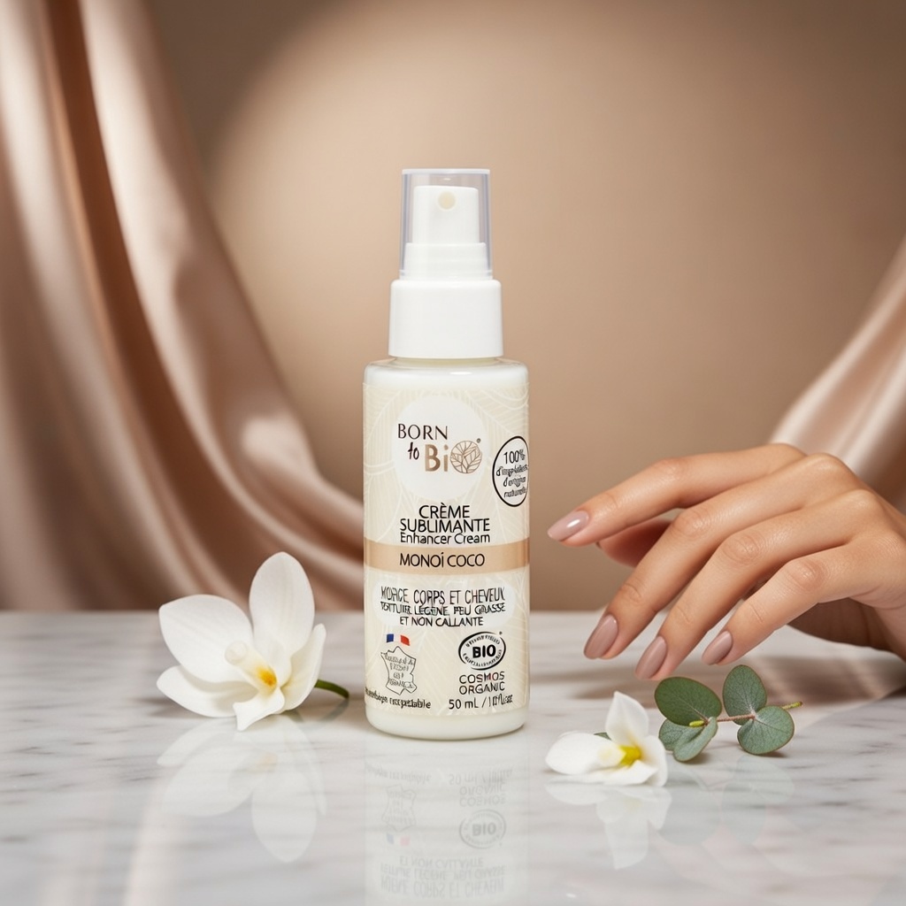 L'Huile Sèche Sublimante au Monoï & Coco de Born to Bio est un soin corps et cheveux certifié biologique qui enveloppe votre peau d'un voile lumineux et satiné tout en lui apportant une nutrition intense et durable. L'huile de Monoï, obtenue par macération de fleurs de Tiaré (Gardenia tahitensis) dans de l'huile de coco vierge, est le trésor ancestral de beauté de la Polynésie française. Utilisée depuis des siècles par les femmes tahitiennes, l'huile de Monoï protège la peau et les cheveux des agressions climatiques — soleil intense, eau de mer salée, vent — tout en leur apportant un parfum floral inoubliable et envoûtant. Riche en acide laurique (oméga 12, environ 45 %), l'huile de coco pénètre profondément dans la structure de la fibre capillaire pour la nourrir de l'intérieur, renforcer sa résistance et prévenir les dommages dus à la chaleur et aux traitements chimiques. Ses propriétés antimicrobiennes naturelles dues à ses acides gras à chaîne moyenne assainissent le cuir chevelu et préviennent les infections fongiques. Grâce à son séchage ultra-rapide sans résidu gras, cette huile sèche sublime le teint en lui apportant un éclat nacré et lumineux immédiat. Parfaite en soin après-soleil, après la douche ou sur cheveux humides pour un rendu brillant et nourrissant immédiat.